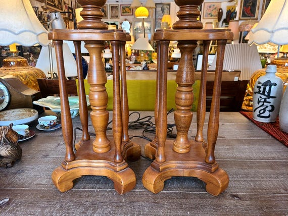 Mid Century Turned Wood Lamp With Live Edge ~ Turned Wood With Live Edge Table Lamp ~ Vintage Table Lamp